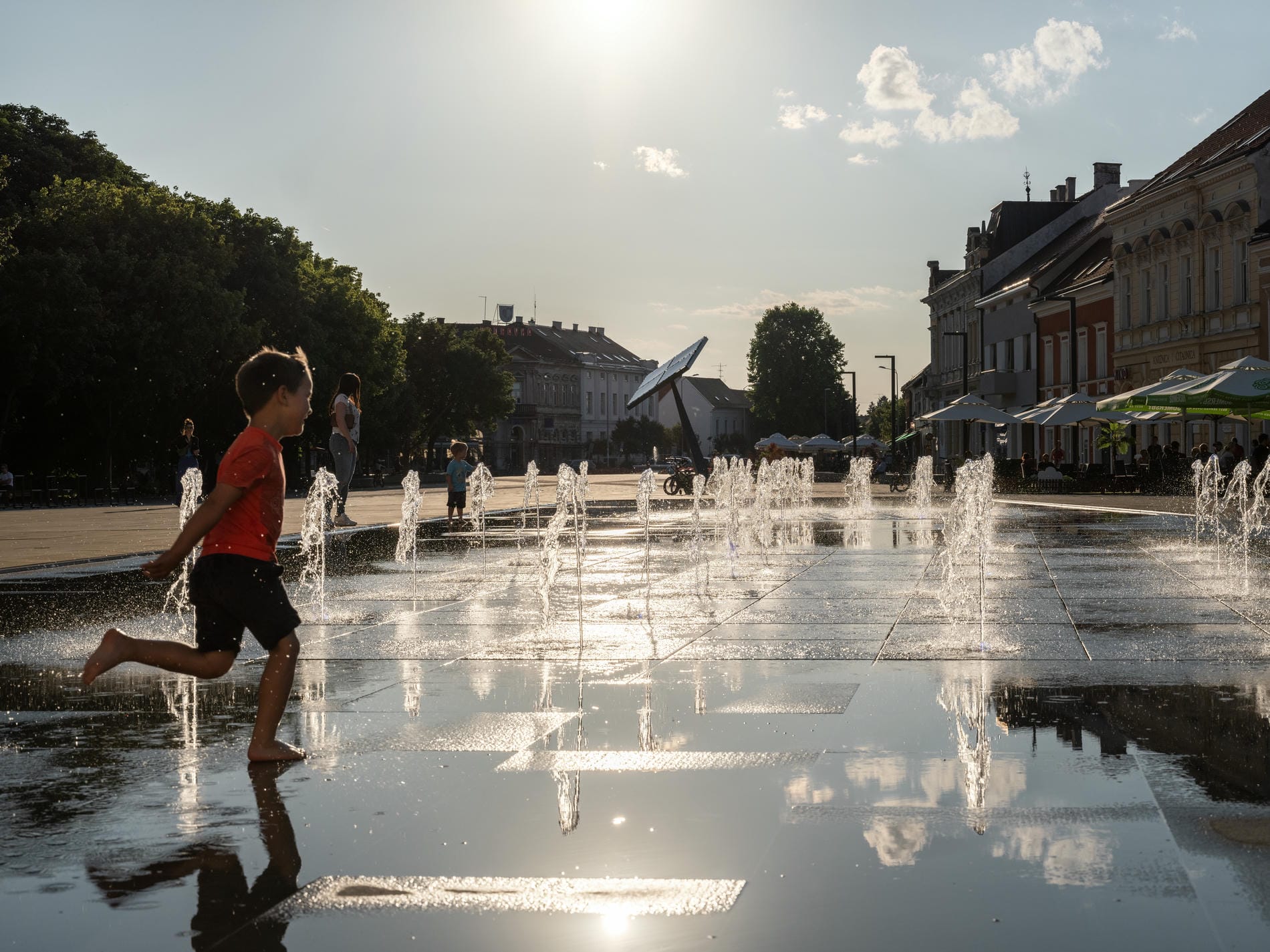 Roditelji ih budno gledaju iz obližnjeg kafića, već pomireni s mokrom odjećom i obućom. Oni bolje pripremljeni ponijeli su i rezervnu. Kada se mlaznice umire i fontana se opet pretvori u mirno vodeno zrcalo, djeca znaju da je vrijeme za predah, a roditelji iskoriste trenutak da ih pobrišu i brzinski nahrane. Sve dok ponovno ne krene 'program'.