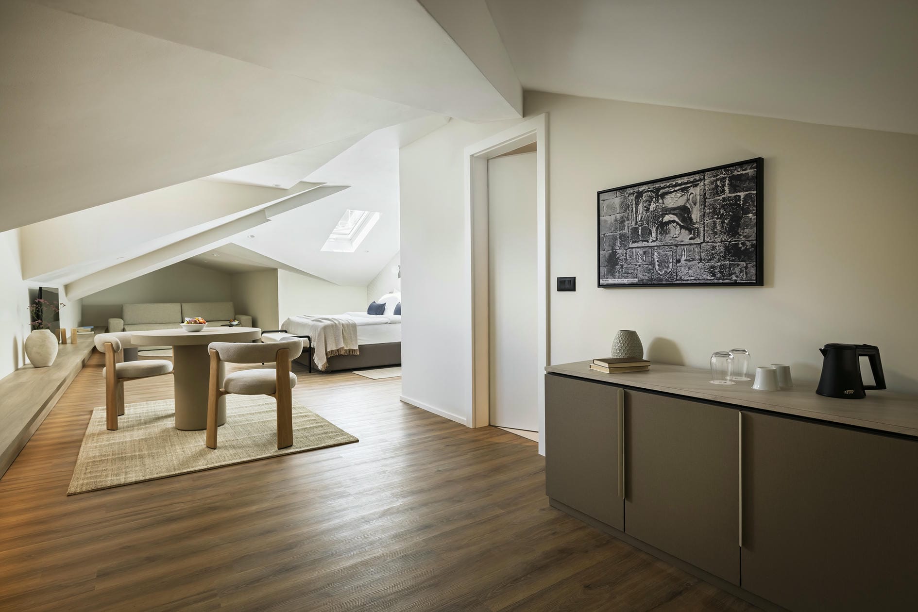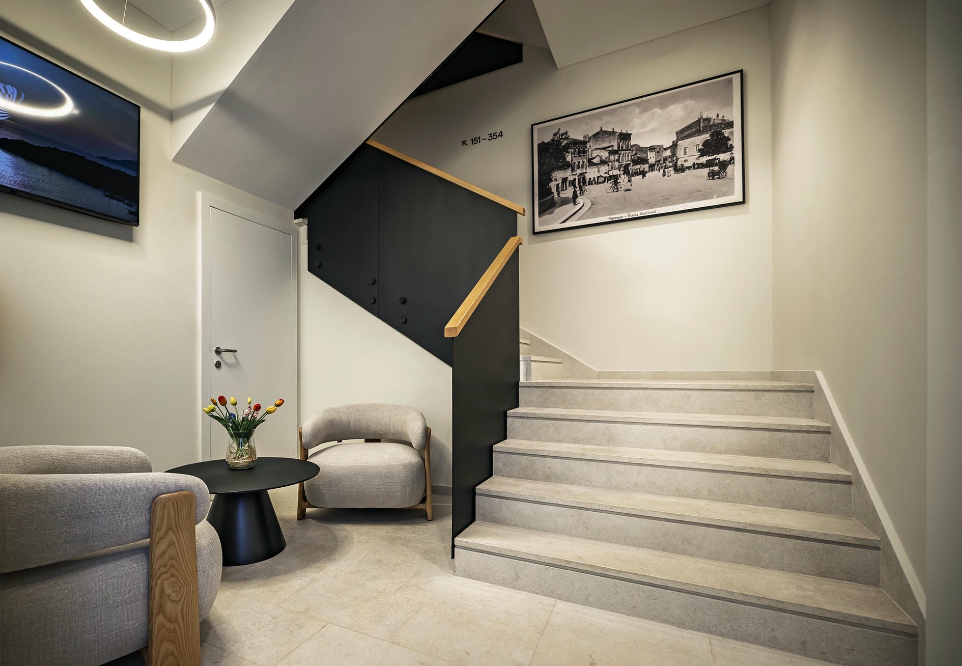Poseban karakter prostoru daju Walls with Souls tapete i slike koje oblikuju atmosferu vile. U sobama se ističe zidna tapeta Traces in Motion, čije apstraktne linije i ritmična kompozicija unose dinamiku i eleganciju. Suptilni pokret motiva stvara osjećaj suvremenog luksuza, a istovremeno se skladno uklapa u povijesni ambijent stare gradske jezgre.