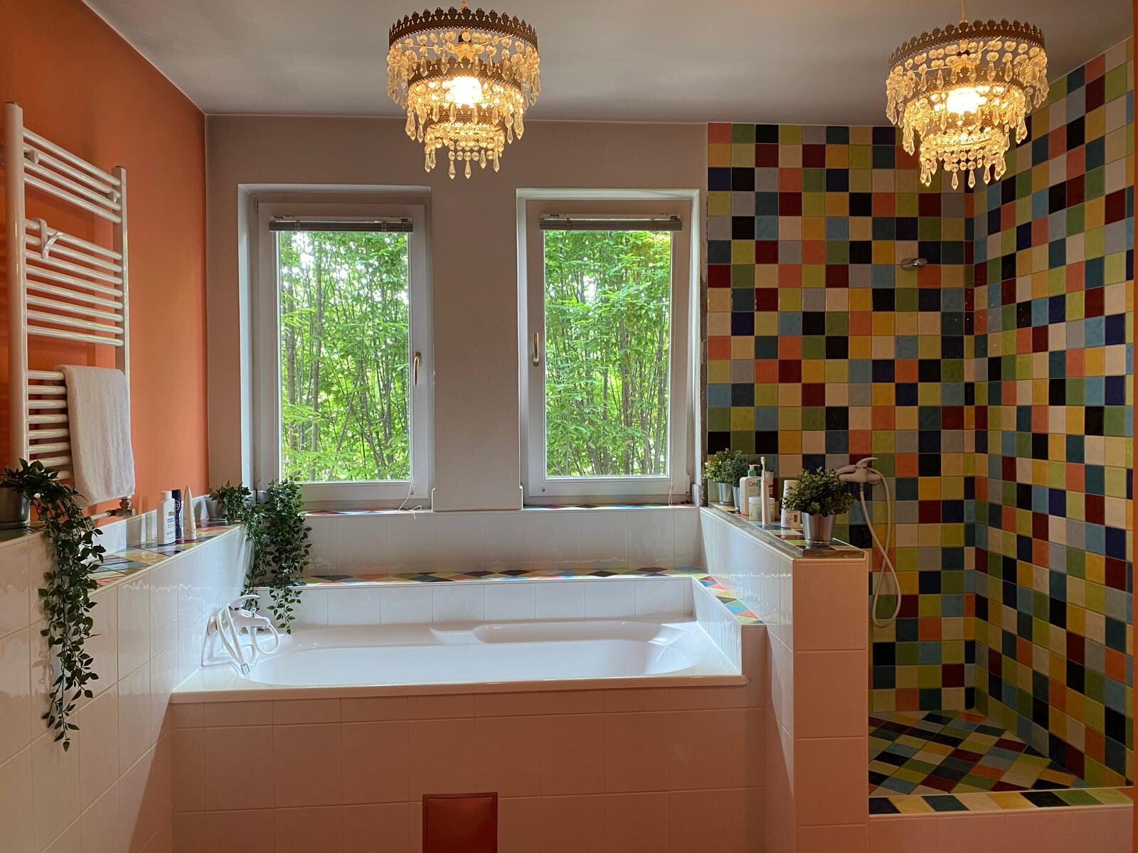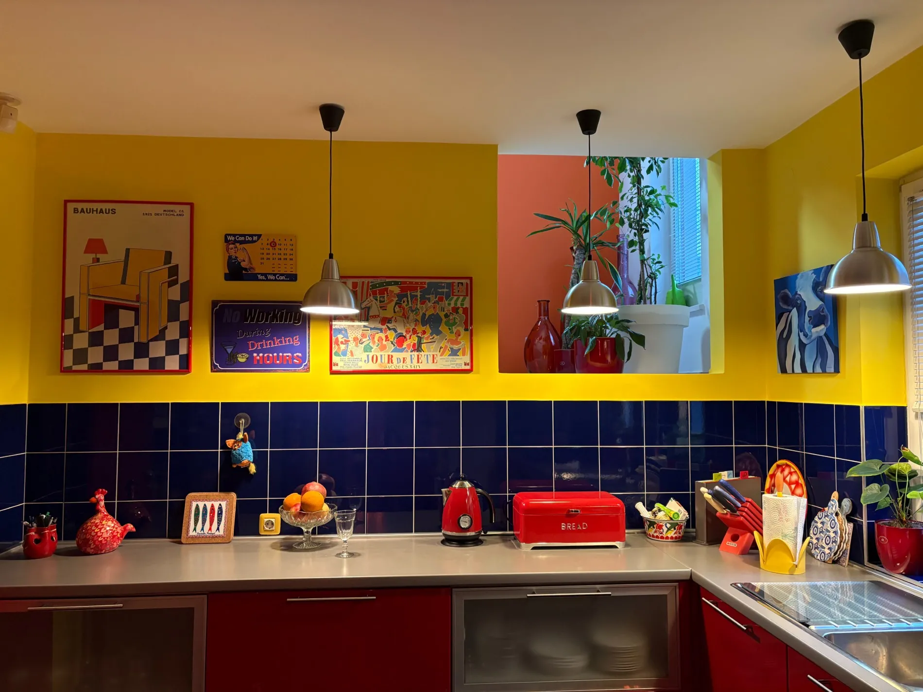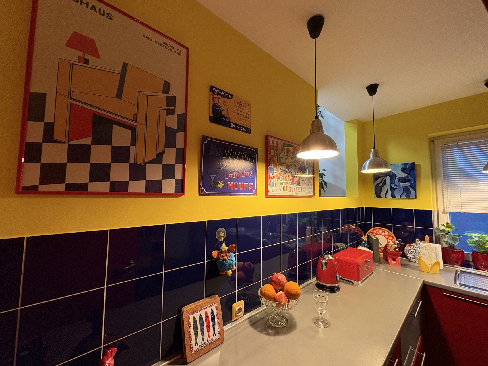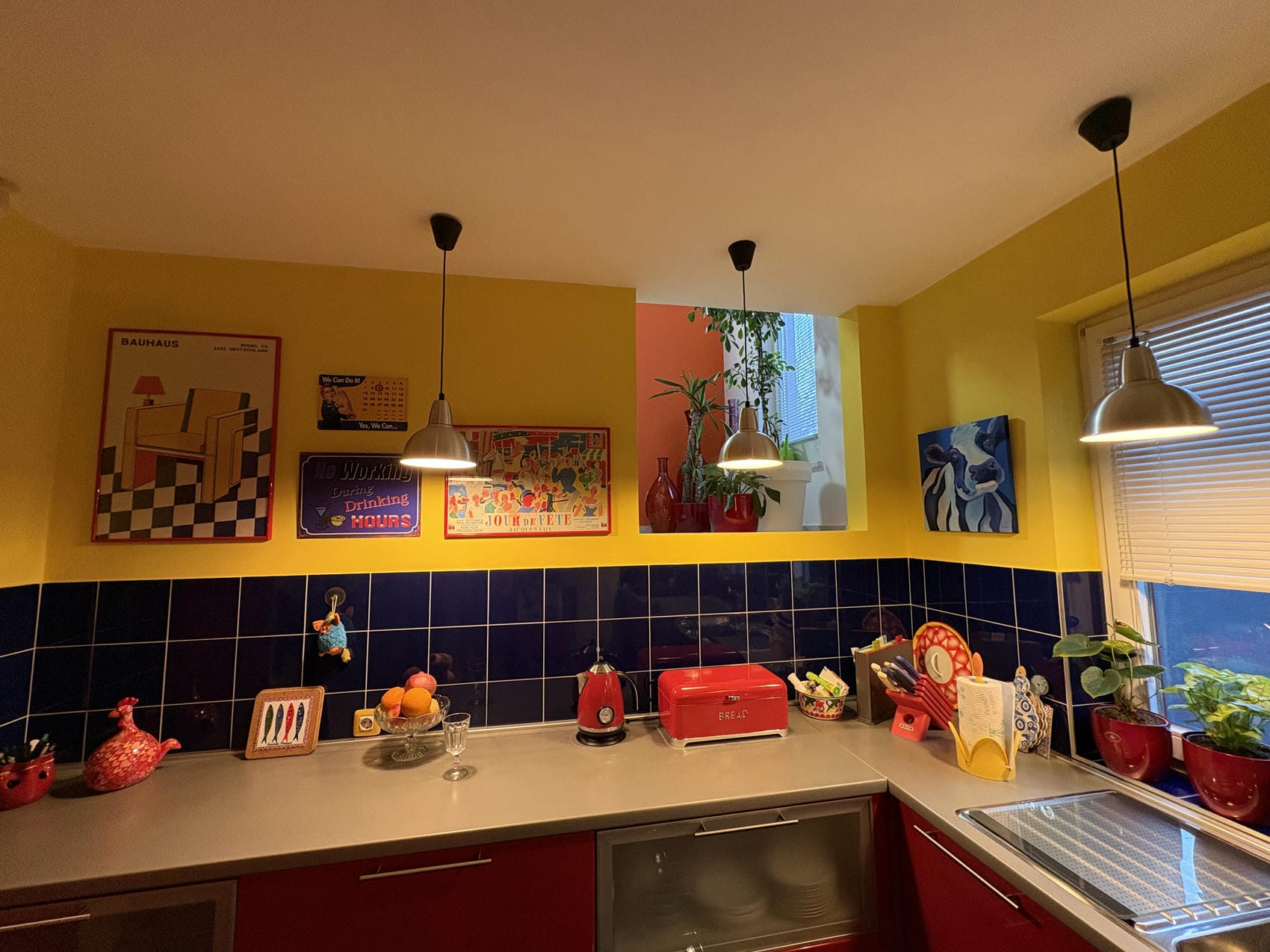 Da, cijeli stan ima izražen kolorit i pomalo pomaknute detalje; kuhinja nije iznimka nego dio iste priče. Volim kontrast i ravnotežu: ako je zid smiren, detalj je razigran i obrnuto. Tako prostor ostaje živ, ali ne kaotičan. U kupaonici sam, primjerice, kombinirala čak 14 različitih boja pločica, a kao kontrapunkt se pojavljuju kristalni lusteri kakve pamtimo iz dnevnih boravaka sedamdesetih