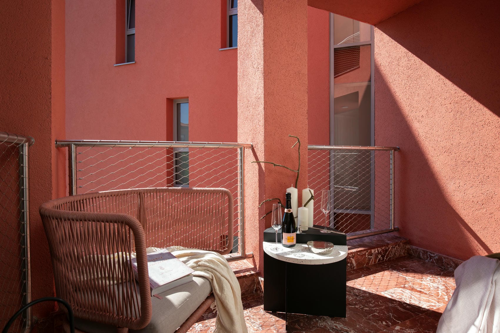 Poznata po svom složenom i istovremeno suzdržanom obliku te upečatljivoj fasadi crveno-koraljne boje, zgrada je omeđena slikovitim pejzažem planina, zelenih stabala i kristalno plavog mora, što ju je učinilo savršenim slikarskim platnom za još jedan projekt dizajna interijera unutar njenih zidova.
