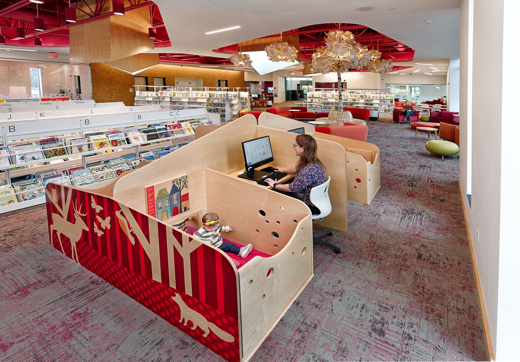 Radna jedinica u Fairfield knjižnici za korisnike s djecom, dizajn Quinn Evans i TMC Furniture