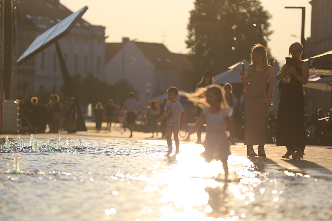 Roditelji ih budno gledaju iz obližnjeg kafića, već pomireni s mokrom odjećom i obućom. Oni bolje pripremljeni ponijeli su i rezervnu. Kada se mlaznice umire i fontana se opet pretvori u mirno vodeno zrcalo, djeca znaju da je vrijeme za predah, a roditelji iskoriste trenutak da ih pobrišu i brzinski nahrane. Sve dok ponovno ne krene 'program'.