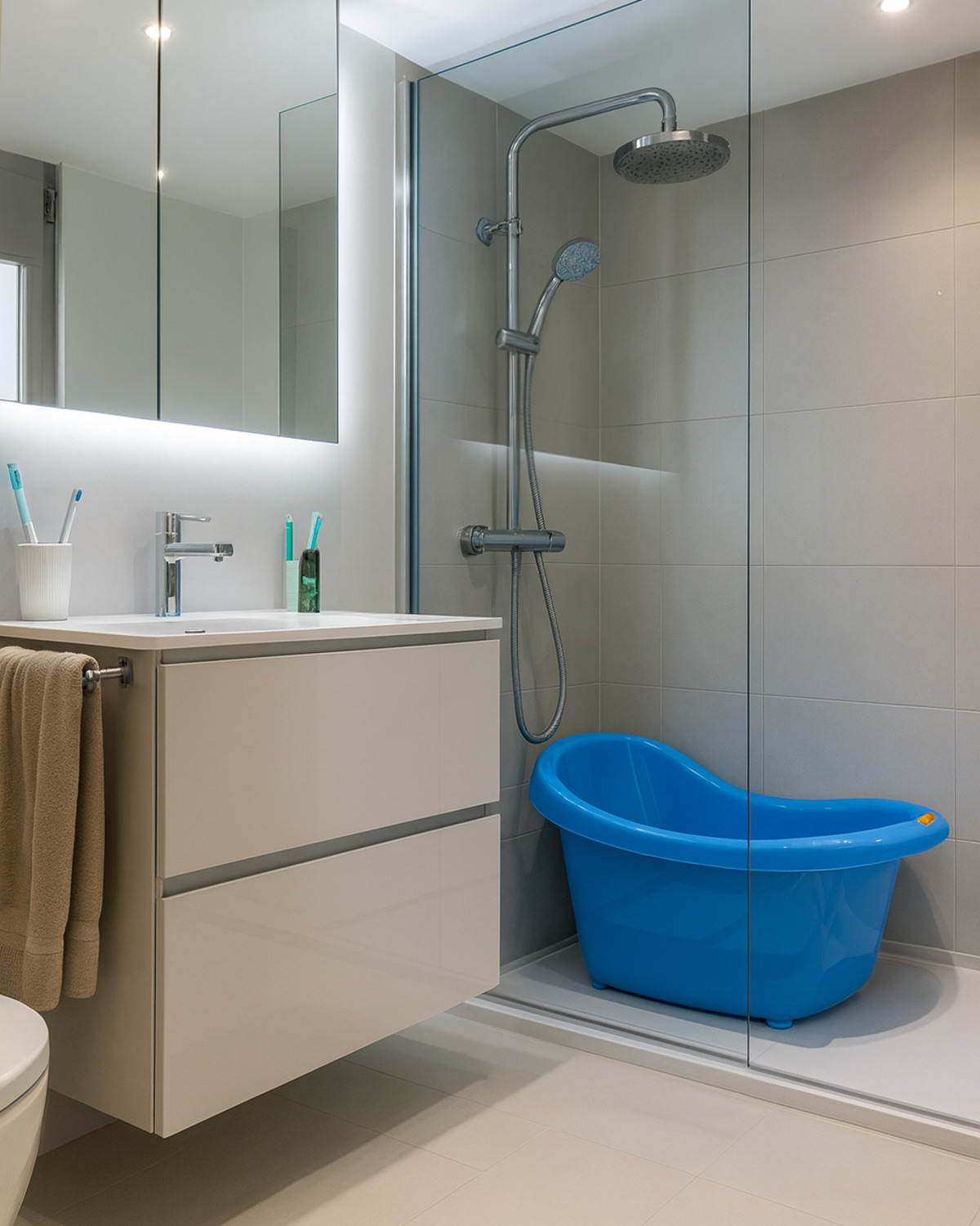 Treći primjer: Jako želite tuš-kanalicu. Naravno i zaštitnu fiksnu staklenu stijenu sa strane s kojom svaka kupaonica izgleda kao da ste u hotelu s pet zvjezdica. Čak i ako ste ranije pomišljali na klasičnu kadu, u nekoj od trgovina kupaonskom opremom ljubazno će vas obavijestiti da nemaju u prodaji više od jednog modela jer kade više jednostavno nisu popularne. Ali vi imate dvoje malene djece. U jednom trenutku kupujete veliku plastičnu kadu koju ubacujete u svoj tuš jer se vaša djeca vole kupati u kadicama i nekoliko puta tjedno to je aktivnost koja ih zabavi minimalno pola sata (svi znamo koliko je to korisno). Te plastične kade sad stoje sa strane u našoj ušminkanoj kupaonici, smetaju pri prolasku i kvare onu savršenu sliku.