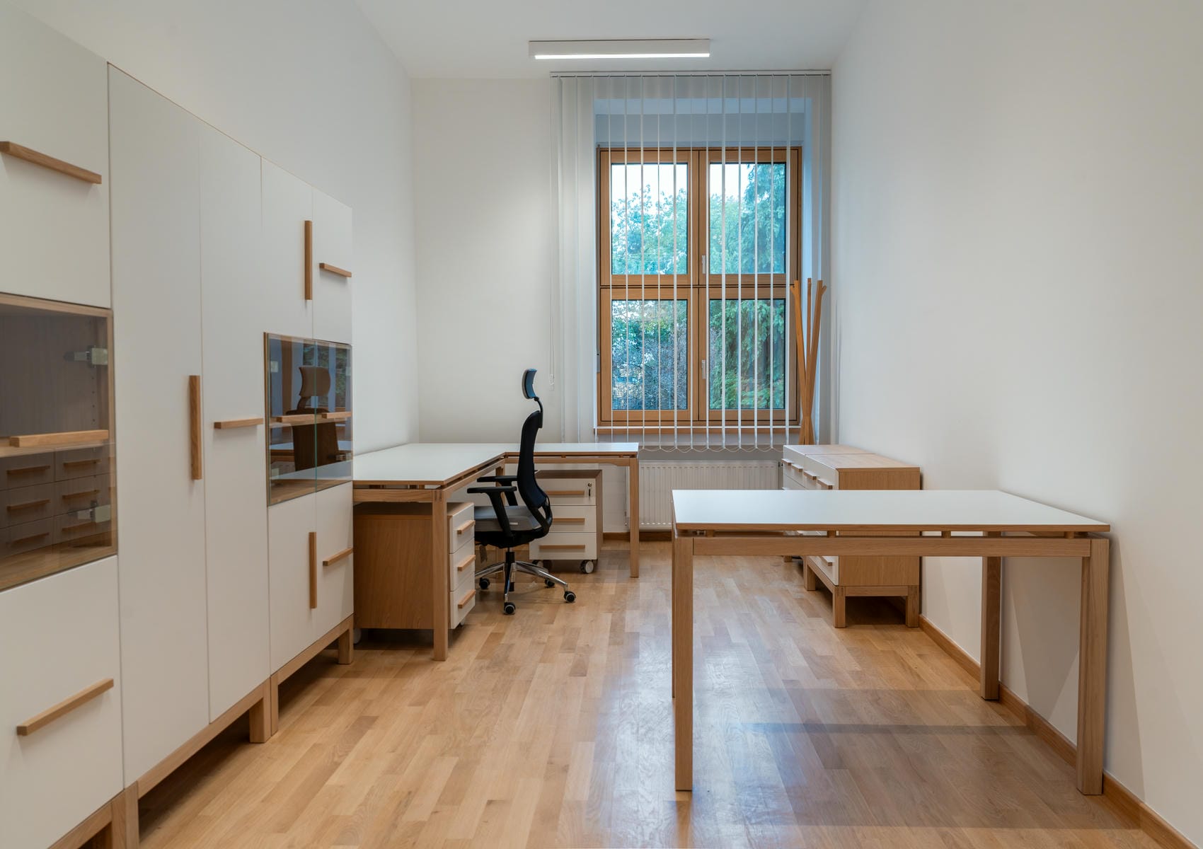 „Drveni elementi, bilo da su dijelovi prozora, vrata, podnih obloga, akustik obloga ili namještaja, zaštićeni su samo prozirnim mat ili polu mat lakom kako bi ostala vidljiva struktura prirodnog drveta."