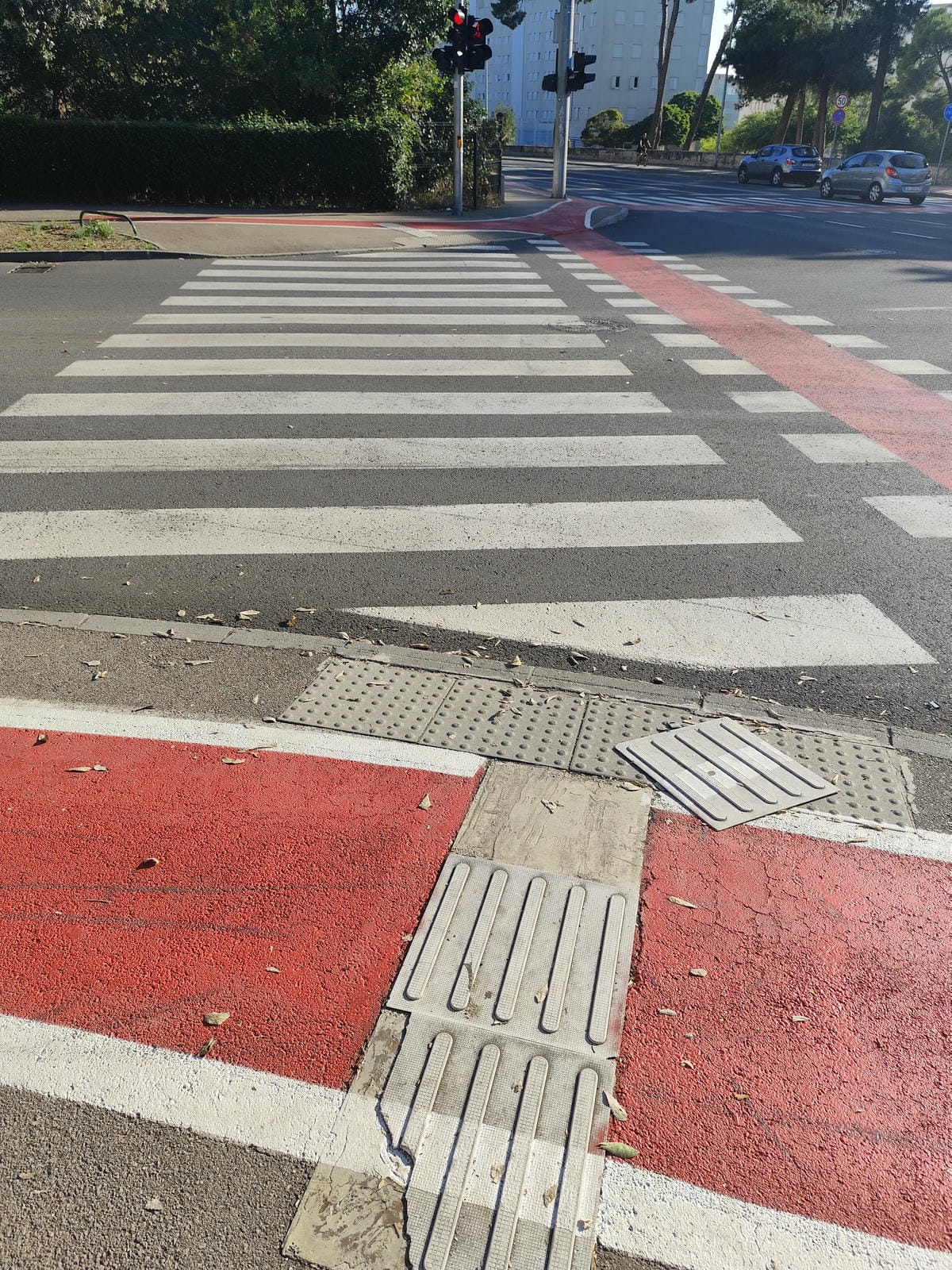 Posebno im je važno osigurati traku vodilicu za slijepe koja bi išla od ulice Branimirova obala prema mostu. Općenito im je za sigurnost kretanja potrebno što više taktilnih oznaka na javnim površinama, pješačkim prijelazima pogotovo.